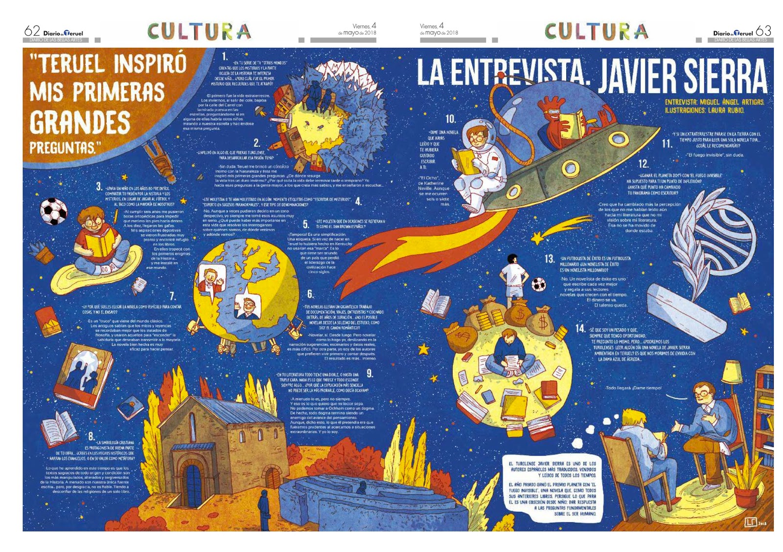 La cuarta edición del Diario de las Bellas Artes —preciosa idea de Diario de Teruel— se ha superado a sí misma. Maravilloso trabajo. Un periódico sin fotografías. Un periódico sólo ilustrado con obras realizadas por sesenta alumnos y ocho profesores del Grado de Bellas Artes del Campus de Teruel. 96 páginas para guardar. Ofrecemos una buena selección: